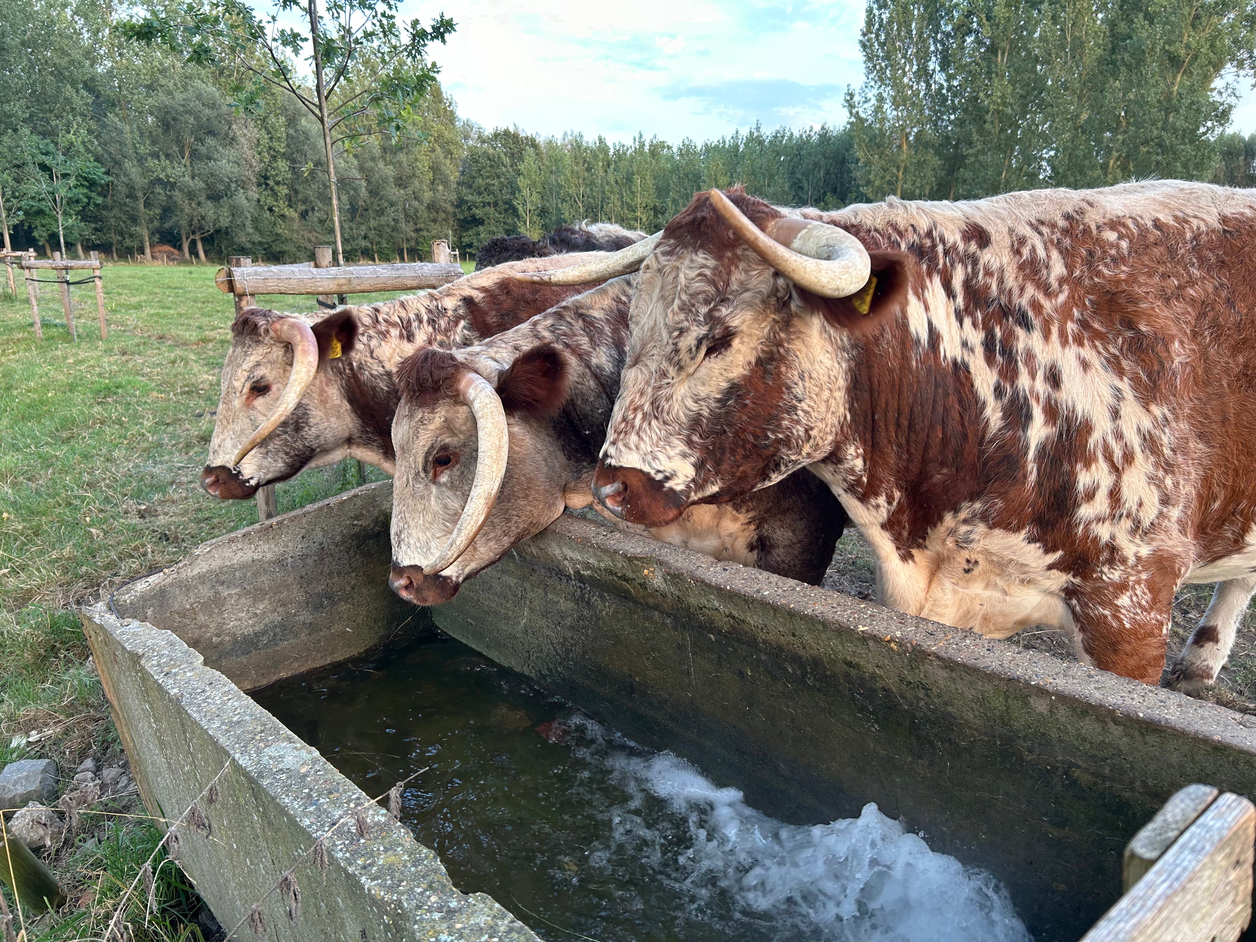 De English Longhorn komt uit het noorden van Engeland, maar lijkt weggelopen uit een ander tijdperk. In de film Braveheart duiken ze op als zwijgzame figuranten, maar hier spelen ze de hoofdrol. Niet alleen in ons landschap, ook in het verhaal dat we samen met hen willen schrijven.
